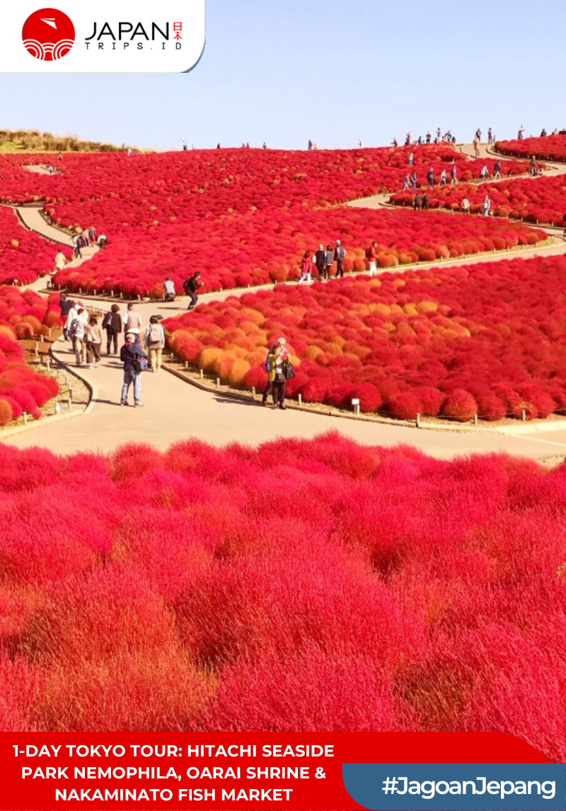 Berenanglah di lautan bunga biru Nemophila dan bunga merah muda Shibazakura di Taman Tepi Laut Hitachi. Mampirlah ke berbagai tempat wisata untuk menikmati Ibaraki dan semua yang ditawarkan. Hanyutkan diri Anda dalam budaya dan sejarah Jepang, dan cicipi kuliner Jepang yang otentik.Mengagumi ratusan bunga yang berbeda, mencicipi hidangan laut segar, dan menikmati angin laut. Nikmati penjemputan dan pengantaran yang nyaman dari hotel-hotel di pusat kota Tokyo dengan sopir bahasa Cina-Jepang