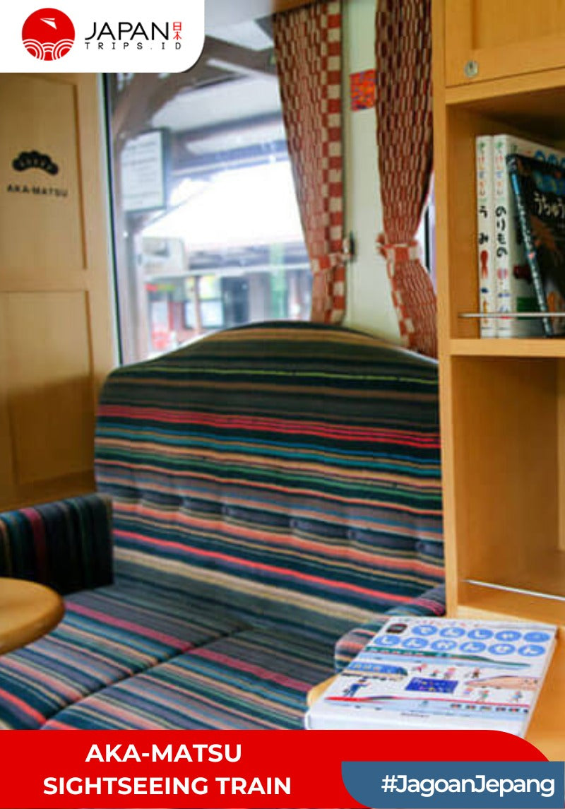 Nikmati perjalanan santai menyusuri garis pantai utara Kyoto dengan kereta wisata bertema “pohon pinus” yang memukau. Tango AKA-MATSU Train menghubungkan Amanohashidate dan Nishimaizuru, menawarkan pengalaman unik yang memadukan keindahan alam, kenyamanan, dan sentuhan seni desain Jepang. Dirancang oleh desainer industri ternama Eiji Mitooka, kereta ini memiliki interior hangat berbahan kayu alami dengan jendela besar yang memungkinkan penumpang menikmati pemandangan Laut Jepang, hutan hijau, dan desa-desa tradisional sepanjang perjalanan. Beragam pilihan tempat duduk seperti sofa, kursi bar, dan meja untuk kelompok kecil menjadikan perjalanan ini semakin nyaman dan cocok untuk semua kalangan—baik solo traveler, pasangan, maupun keluarga.