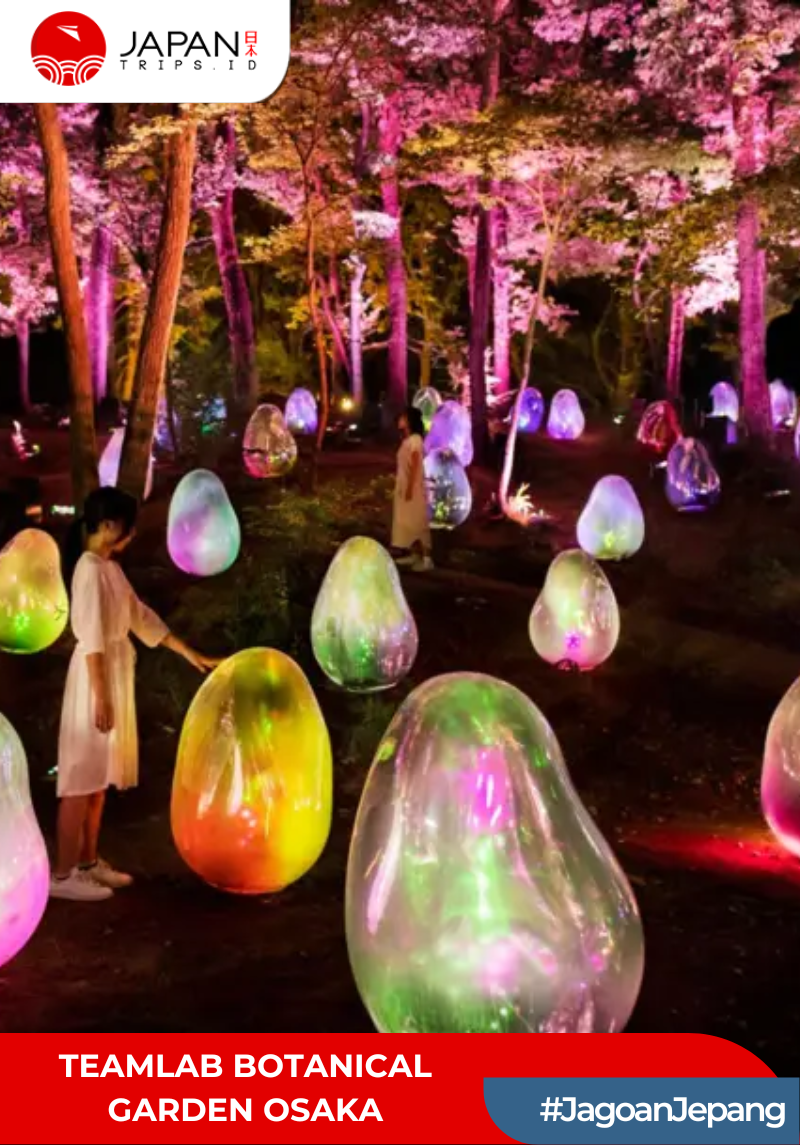 Jelajahi dunia cahaya magis di TeamLab Botanical Garden Osaka—pengalaman interaktif yang memadukan seni, teknologi, dan alam!